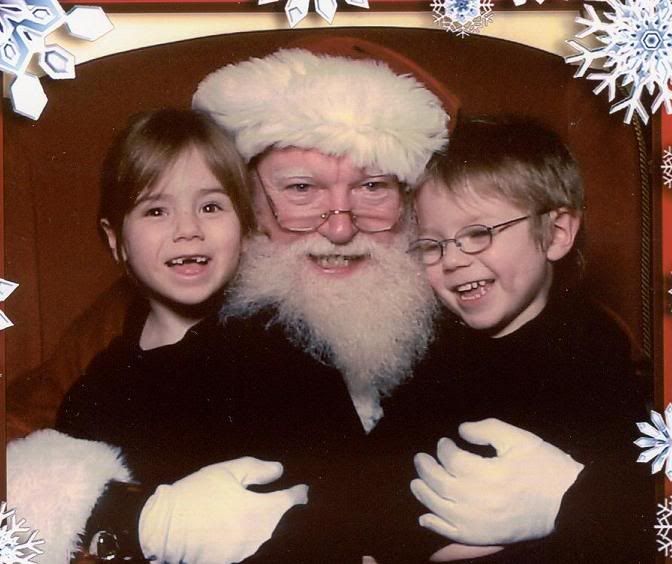 I rushed downstairs, hoping I hadn't missed the Santa experience, and found the boys sitting on Santa's lap with Chris taking pictures. I swear Justin was about ready to go into orbit, and Daniel was pretty thrilled too. And what thrilled Justin the most was that this