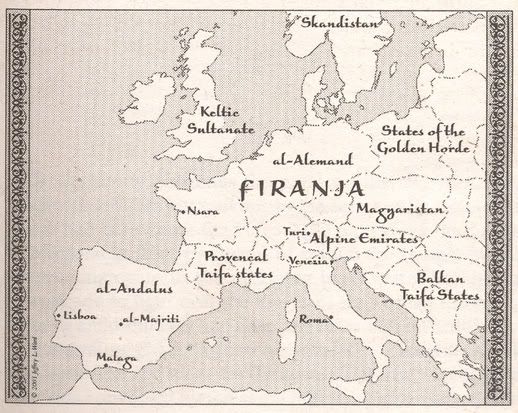 This was a journey through 700 years of history, based on the premise: what if the Black Death had wiped out 90% of Europe's population in the mid 1300's, instead of just 30-50%? The last 700 years dominated, not by Christianity and European colonialism, but by China and the Muslim world. Buddhism, Confucianism, Islam, and to a lesser extent, Hinduism as the main religions, with Judaism and Christianity mere historical footnotes. Europe repopulated by Muslims and renamed "Firanja" (after France). Spain renamed Al-Andalus, Germany = Al-Alemand, Scandinavia = Skandistan, Switzerland = Alpine Emirates, Britain = Keltic Sultanates, etc. North America colonized by Buddhist Chinese on the West Coast, Muslims on the East Coast, and pretty much left alone all the way down the middle. India and Native North America as major world powers standing against the superpowers of China and the Muslim world.